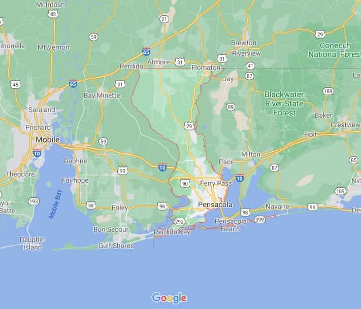 Escambia County is on Pensacola Bay and runs from the Gulf Coast to the northern Florida state line. The area is known for its scenic, white-sand beaches and outdoor recreation. Many young professionals live in Escambia County. There's a military presence in the area with Pensacola Naval Air Station as the headquarters of the Blue Angels. The area has a strong educational culture with the 9000-student University of West Florida. Land and home values continue to grow so it's a good time to buy land in Escambia County.
